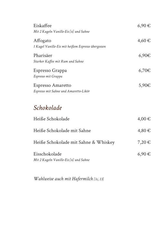 - Kaffeegenuss: Indulge in expertly crafted coffee, from a simple espresso (€2.80) to a velvety latte macchiato (€5.10). Each cup is brewed with love, enhancing the rich aromas that fill the air.
